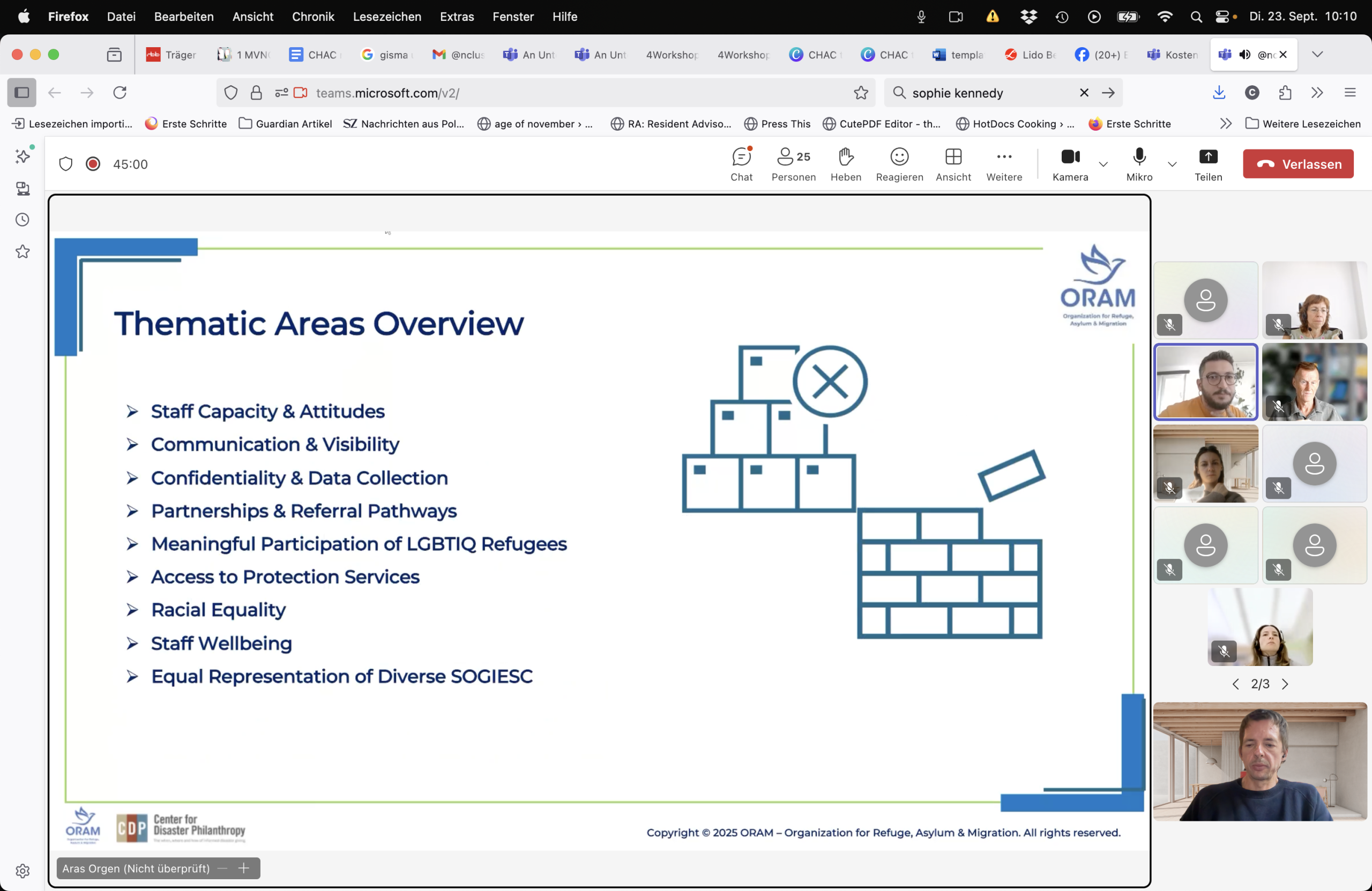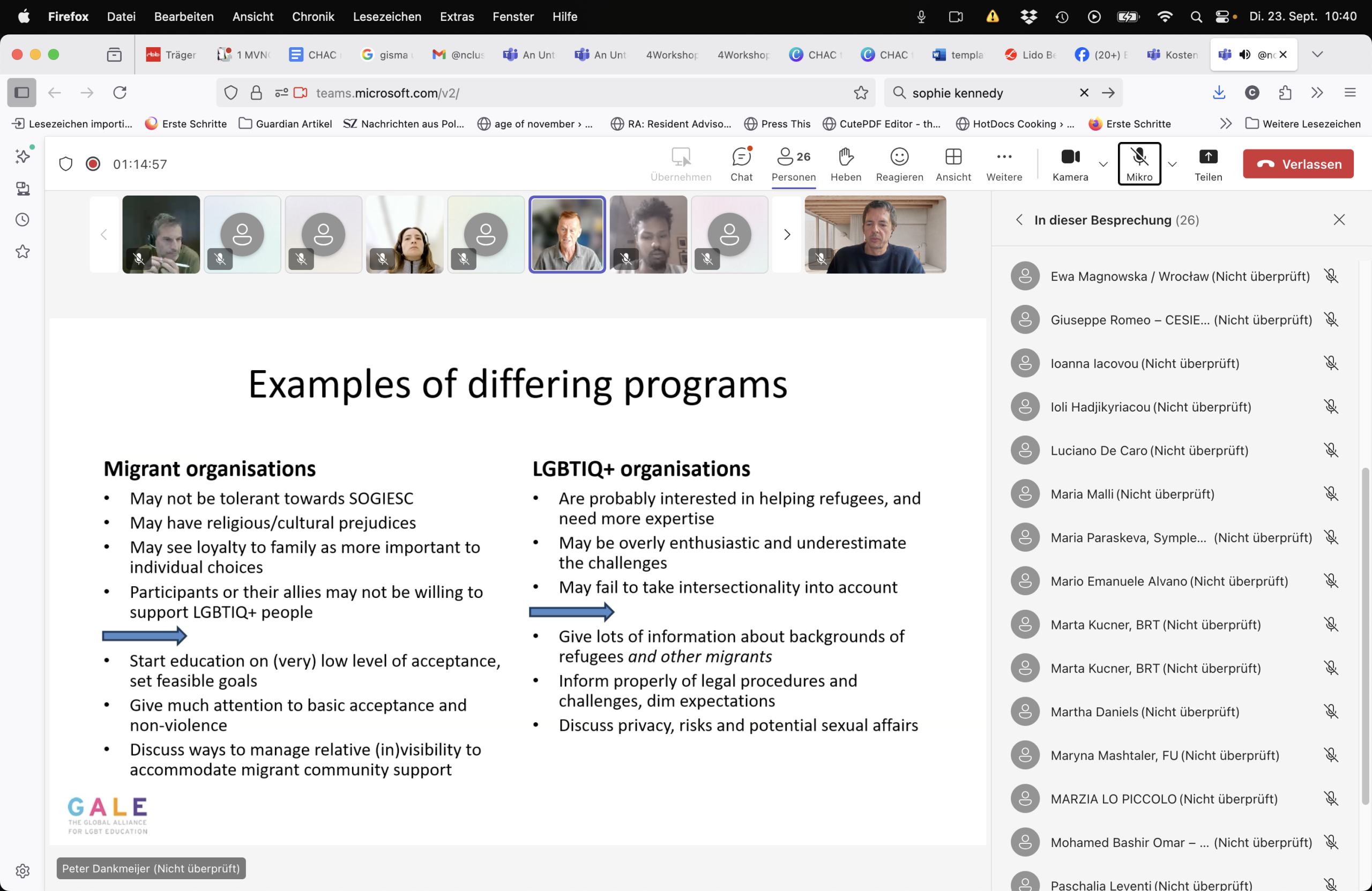 Im September 2025 veranstalteten wir auf Einladung des Ayuntamiento de Alzira einen internationalen Online-Workshop zur Integration von LGBTQI+-Migranten und -Flüchtlingen. Die Teilnehmer aus ganz Europa tauschten Erkenntnisse aus und erarbeiteten gemeinsam Strategien für eine integrativere Kommunalpolitik, wobei sie Instrumente wie das Checkliste "Sicherer Raum" für die Inklusion von LGBTIQ+-Flüchtlingen die von ORAM entwickelt wurden, und diskutierten intersektionelle Ansätze, die Notwendigkeit von Empathie sowie die wichtige Rolle lokaler Ausbilder. Besonderer Dank geht an Aras Orgen (ORAM) und Peter Dankmeijer (GALE) für ihre wichtigen Beiträge und die mit allen Partnern geteilte Expertise.